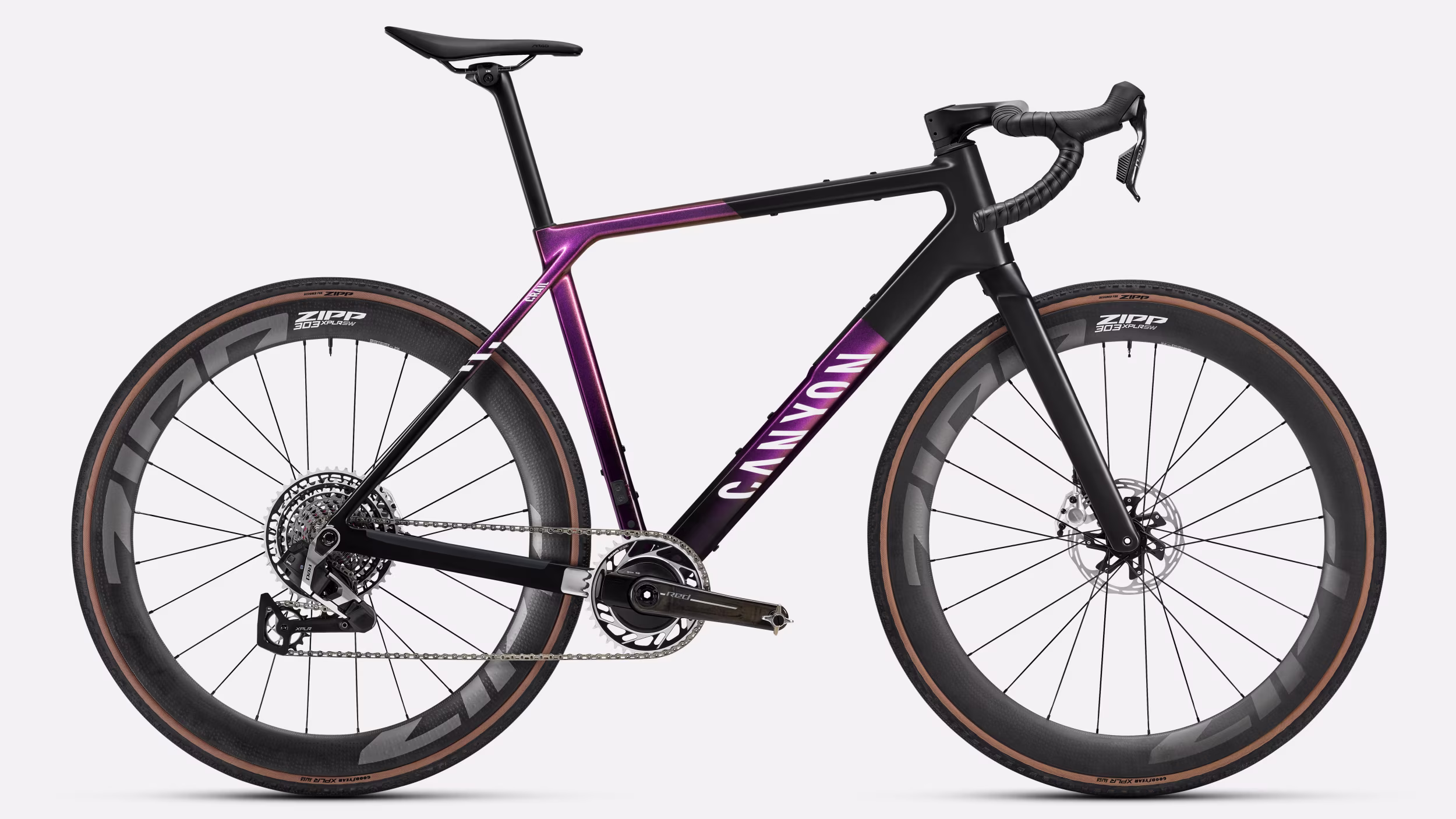 Das Canyon Grail CFR AXS ist ein High-Performance Gravel Bike, das speziell für den Renneinsatz und maximale Geschwindigkeit entwickelt wurde. Der leichte Rahmen aus hochwertigem CFR Carbon verfügt über aerodynamische Rohrformen und eine integrierte Unterrohr-Aufbewahrung. Ausgestattet ist das Rad mit der präzisen, kabellosen SRAM RED XPLR AXS 13-fach Schaltung inklusive Powermeter sowie leichten Zipp 303 XPLR SW Carbon-Laufrädern. Das innovative Gear Groove Cockpit sorgt für optimale Ergonomie.